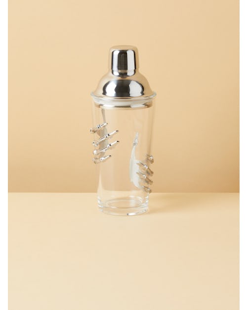 7. Glass and Metal Skeleton Hand Cocktail Shaker