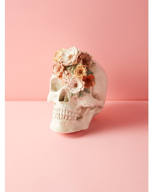 Between blood-splattered tablecloths and life-size yard figurines, Halloween decorations can be quite ghastly and dark. If you’re in the market for something a little more cheery, swap in this colorful skull head instead.