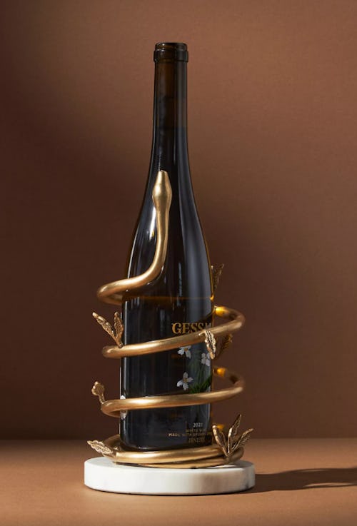 This one-of-a-kind wine bottle display is made from hand-painted marble and features serpent motifs made of cast brass. If you like boujee holiday decor, look no further.