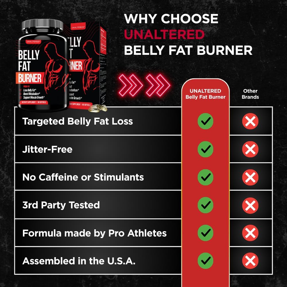 UNALTERED Belly Fat Burner for Men – Natural Weight Loss Pills to Support Reduced Body Fat, Preservation of Lean Muscle Mass, and a Healthy Metabolism – CLA Dietary Supplement – 90 Softgel Capsules